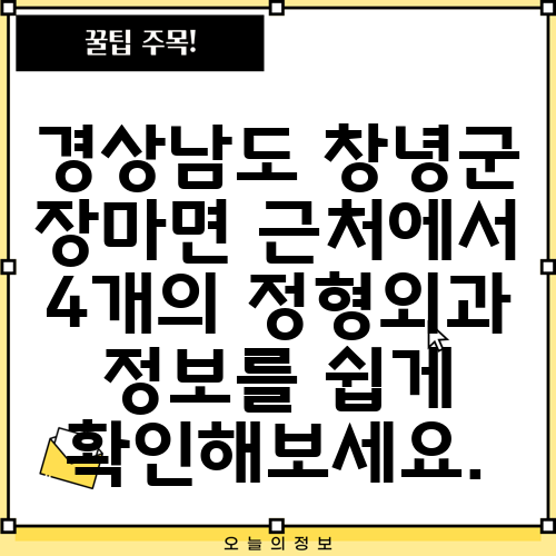 경상남도 창녕군 장마면 근처에서 4개의 정형외과 정보를 쉽게 확인해보세요.