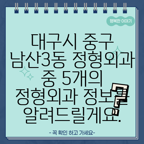 대구시 중구 남산3동 정형외과 중 5개의 정형외과 정보를 알려드릴게요.