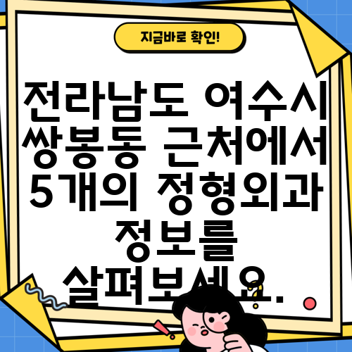 전라남도 여수시 쌍봉동 근처에서 5개의 정형외과 정보를 살펴보세요.