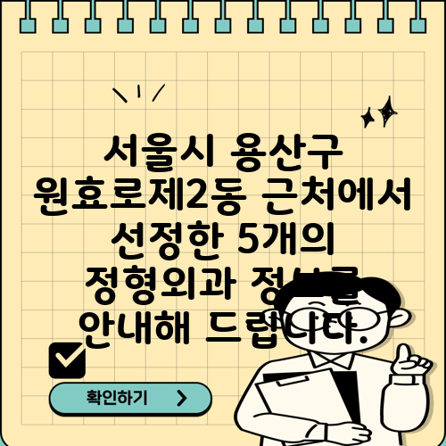 서울시 용산구 원효로제2동 근처에서 선정한 5개의 정형외과 정보를 안내해 드립니다.
