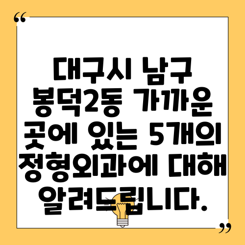 대구시 남구 봉덕2동 가까운 곳에 있는 5개의 정형외과에 대해 알려드립니다.