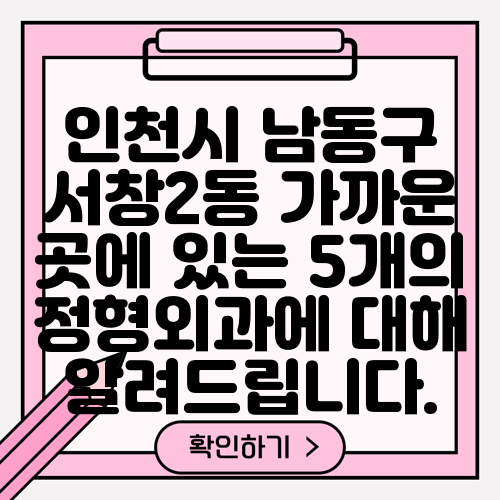인천시 남동구 서창2동 가까운 곳에 있는 5개의 정형외과에 대해 알려드립니다.
