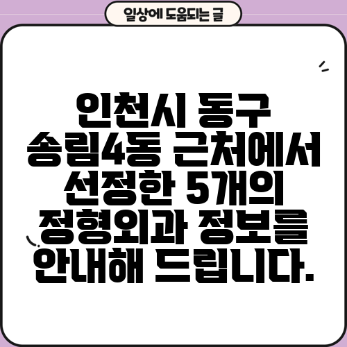 인천시 동구 송림4동 근처에서 선정한 5개의 정형외과 정보를 안내해 드립니다.
