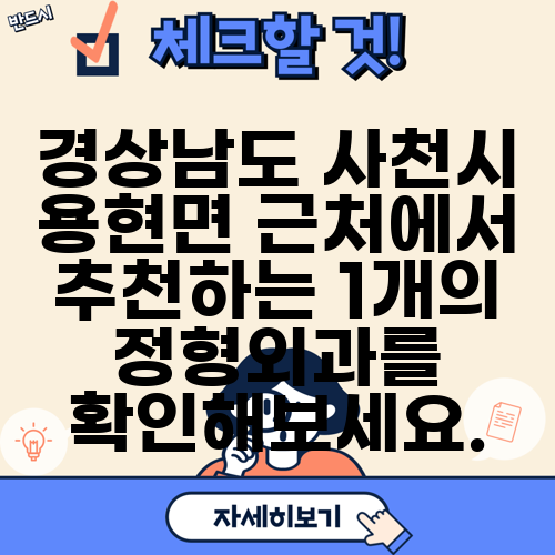 경상남도 사천시 용현면 근처에서 추천하는 1개의 정형외과를 확인해보세요.