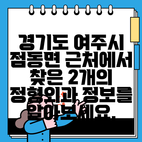 경기도 여주시 점동면 근처에서 찾은 2개의 정형외과 정보를 알아보세요.