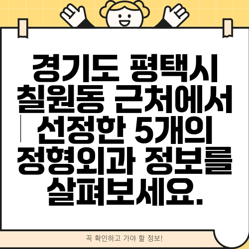 경기도 평택시 칠원동 근처에서 선정한 5개의 정형외과 정보를 살펴보세요.