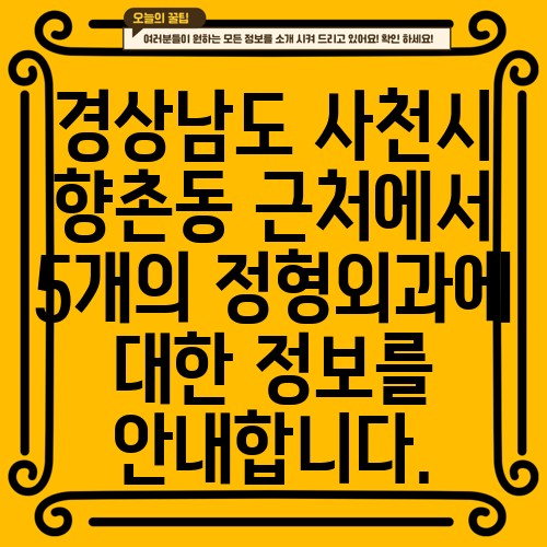 경상남도 사천시 향촌동 근처에서 5개의 정형외과에 대한 정보를 안내합니다.
