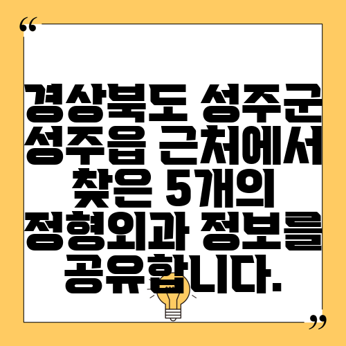 경상북도 성주군 성주읍 근처에서 찾은 5개의 정형외과 정보를 공유합니다.
