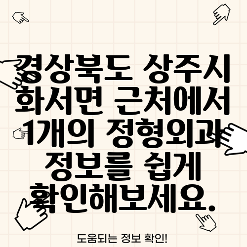 경상북도 상주시 화서면 근처에서 1개의 정형외과 정보를 쉽게 확인해보세요.