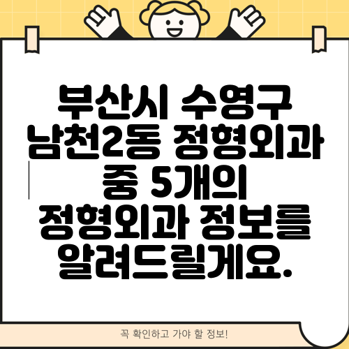 부산시 수영구 남천2동 정형외과 중 5개의 정형외과 정보를 알려드릴게요.