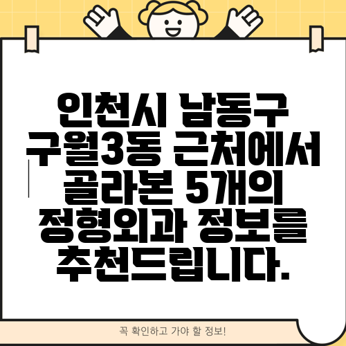 인천시 남동구 구월3동 근처에서 골라본 5개의 정형외과 정보를 추천드립니다.