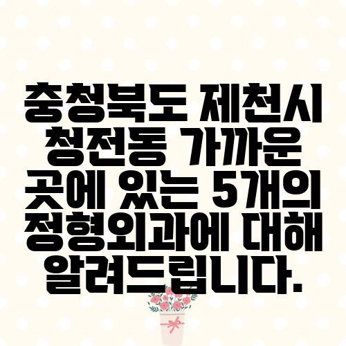충청북도 제천시 청전동 가까운 곳에 있는 5개의 정형외과에 대해 알려드립니다.
