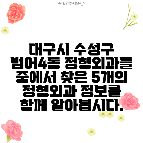 대구시 수성구 범어4동 정형외과들 중에서 찾은 5개의 정형외과 정보를 함께 알아봅시다.