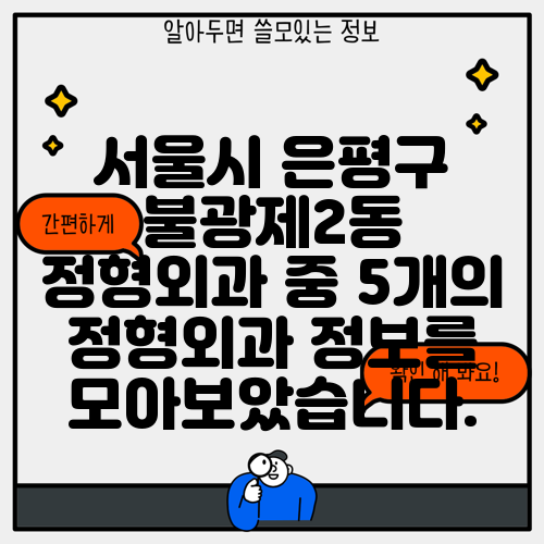 서울시 은평구 불광제2동 정형외과 중 5개의 정형외과 정보를 모아보았습니다.