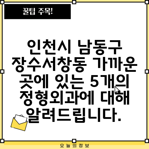 인천시 남동구 장수서창동 가까운 곳에 있는 5개의 정형외과에 대해 알려드립니다.