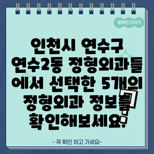 인천시 연수구 연수2동 정형외과들 에서 선택한 5개의 정형외과 정보를 확인해보세요.