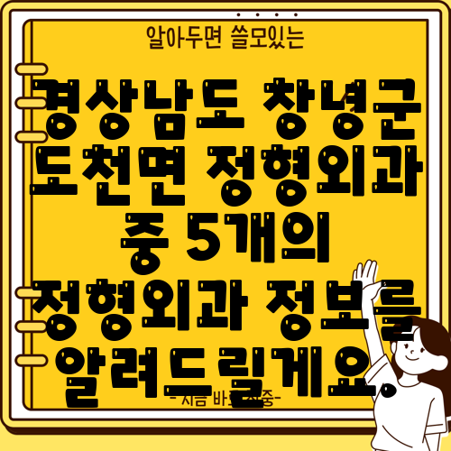 경상남도 창녕군 도천면 정형외과 중 5개의 정형외과 정보를 알려드릴게요.