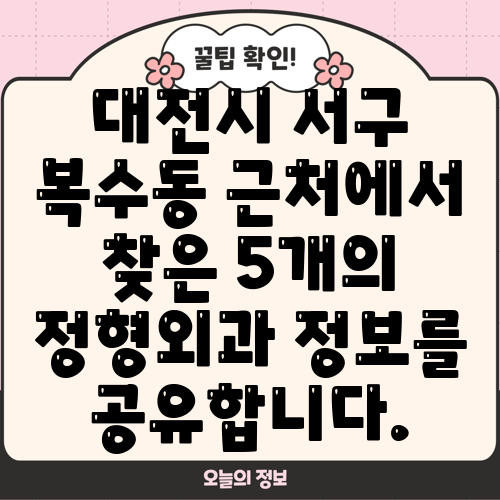 대전시 서구 복수동 근처에서 찾은 5개의 정형외과 정보를 공유합니다.