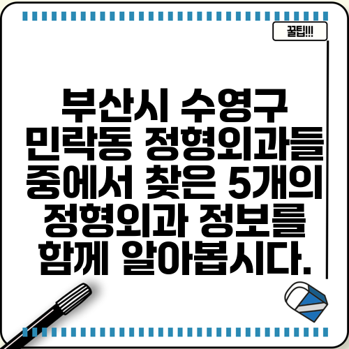 부산시 수영구 민락동 정형외과들 중에서 찾은 5개의 정형외과 정보를 함께 알아봅시다.