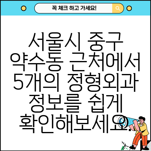 서울시 중구 약수동 근처에서 5개의 정형외과 정보를 쉽게 확인해보세요.