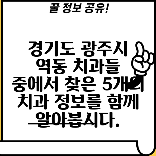 경기도 광주시 역동 치과들 중에서 찾은 5개의 치과 정보를 함께 알아봅시다.