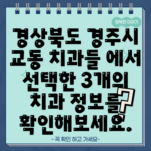 경상북도 경주시 교동 치과들 에서 선택한 3개의 치과 정보를 확인해보세요.