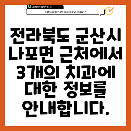 전라북도 군산시 나포면 근처에서 3개의 치과에 대한 정보를 안내합니다.