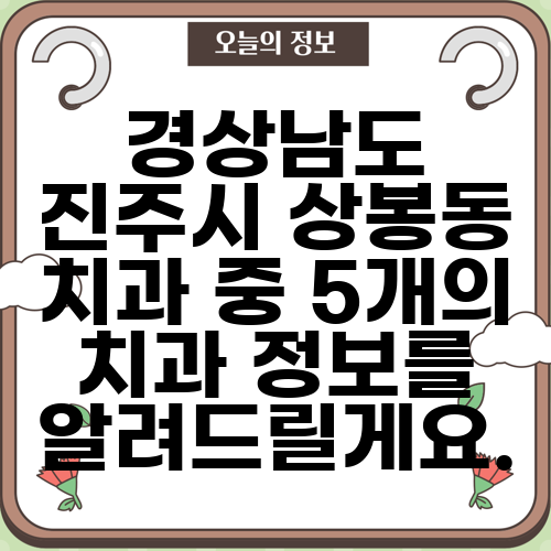 경상남도 진주시 상봉동 치과 중 5개의 치과 정보를 알려드릴게요.