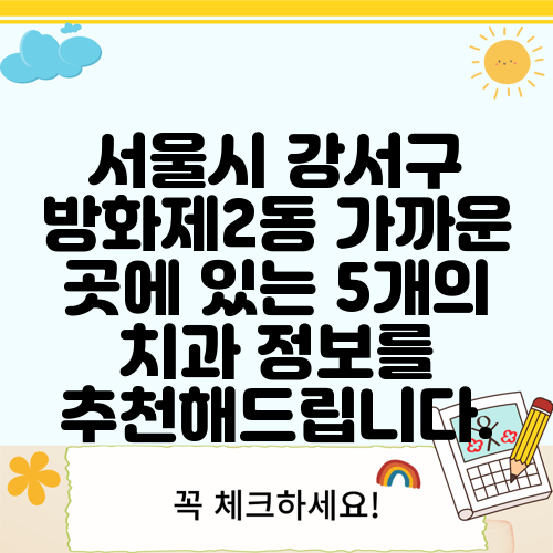 서울시 강서구 방화제2동 가까운 곳에 있는 5개의 치과 정보를 추천해드립니다.