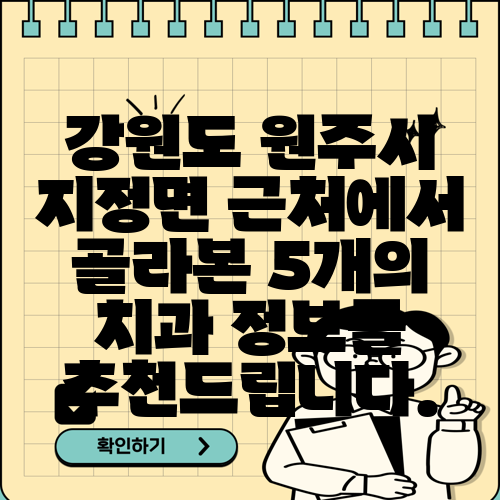 강원도 원주시 지정면 근처에서 골라본 5개의 치과 정보를 추천드립니다.