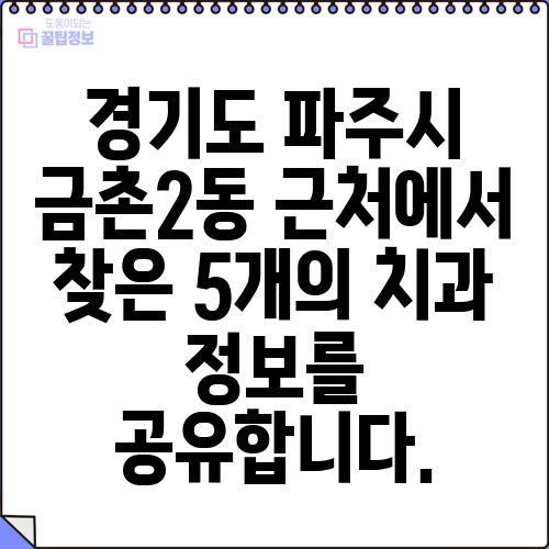 경기도 파주시 금촌2동 근처에서 찾은 5개의 치과 정보를 공유합니다.