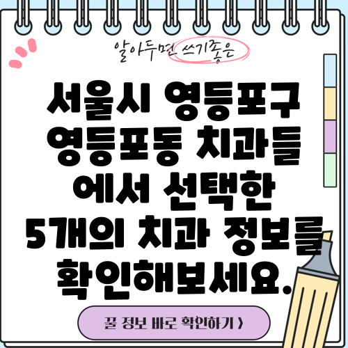 서울시 영등포구 영등포동 치과들 에서 선택한 5개의 치과 정보를 확인해보세요.