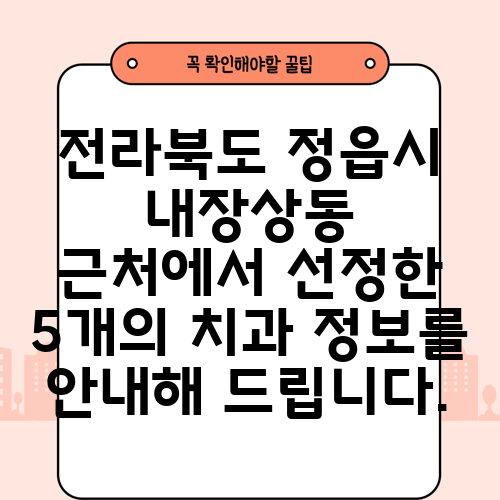 전라북도 정읍시 내장상동 근처에서 선정한 5개의 치과 정보를 안내해 드립니다.