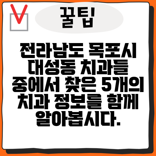 전라남도 목포시 대성동 치과들 중에서 찾은 5개의 치과 정보를 함께 알아봅시다.