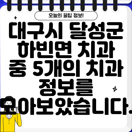 대구시 달성군 하빈면 치과 중 5개의 치과 정보를 모아보았습니다.