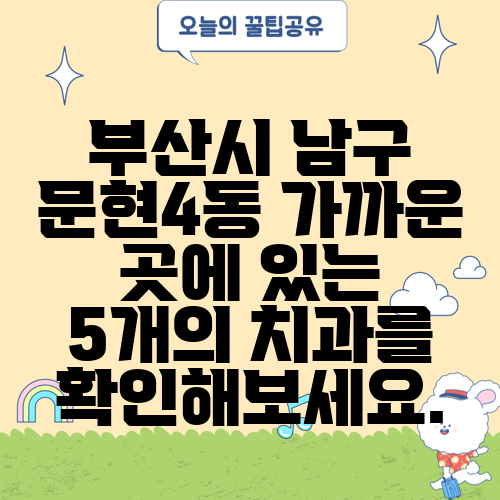 부산시 남구 문현4동 가까운 곳에 있는 5개의 치과를 확인해보세요.