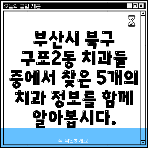 부산시 북구 구포2동 치과들 중에서 찾은 5개의 치과 정보를 함께 알아봅시다.