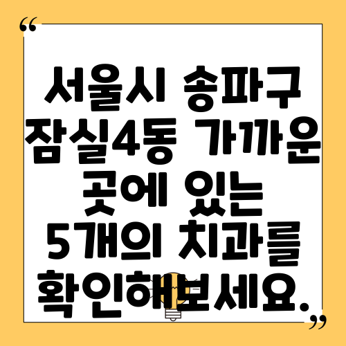 서울시 송파구 잠실4동 가까운 곳에 있는 5개의 치과를 확인해보세요.