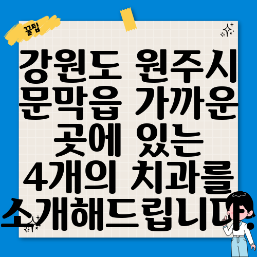 강원도 원주시 문막읍 가까운 곳에 있는 4개의 치과를 소개해드립니다.
