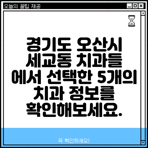 경기도 오산시 세교동 치과들 에서 선택한 5개의 치과 정보를 확인해보세요.