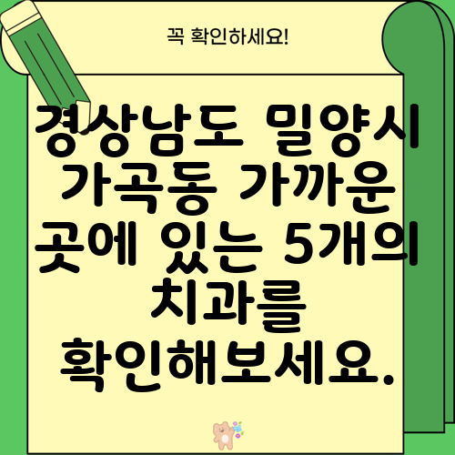 경상남도 밀양시 가곡동 가까운 곳에 있는 5개의 치과를 확인해보세요.