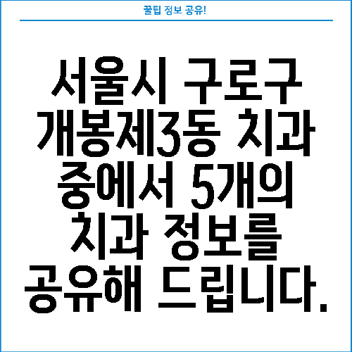 서울시 구로구 개봉제3동 치과 중에서 5개의 치과 정보를 공유해 드립니다.