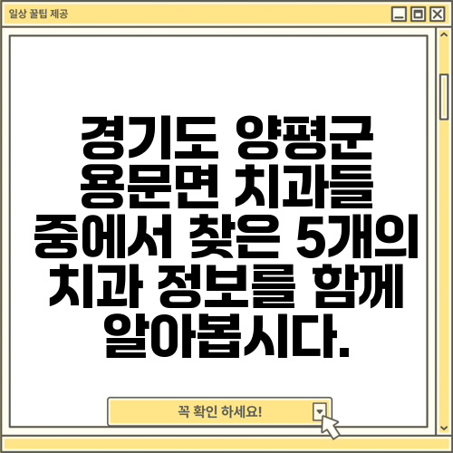 경기도 양평군 용문면 치과들 중에서 찾은 5개의 치과 정보를 함께 알아봅시다.