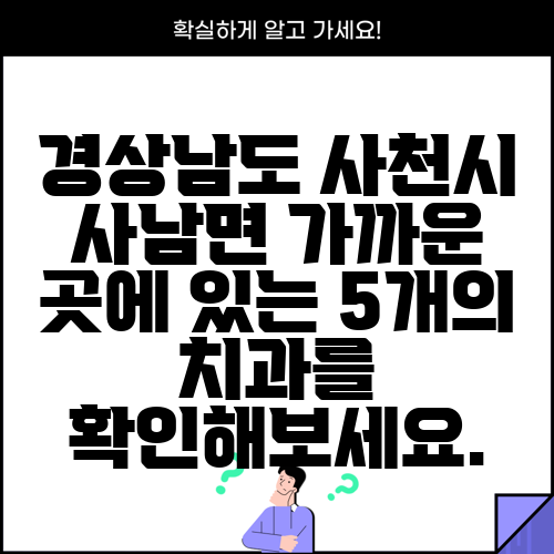 경상남도 사천시 사남면 가까운 곳에 있는 5개의 치과를 확인해보세요.