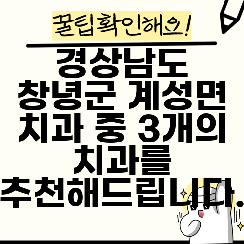 경상남도 창녕군 계성면 치과 중 3개의 치과를 추천해드립니다.