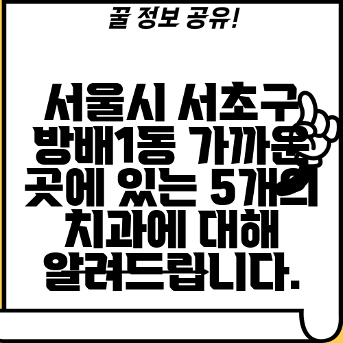 서울시 서초구 방배1동 가까운 곳에 있는 5개의 치과에 대해 알려드립니다.