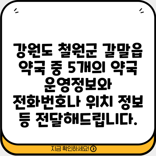 강원도 철원군 갈말읍 약국 중 5개의 약국 운영정보와 전화번호나 위치 정보 등 전달해드립니다.