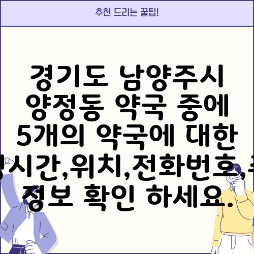 경기도 남양주시 양정동 약국 중에 5개의 약국에 대한 운영시간,위치,전화번호,주소 정보 확인 하세요.