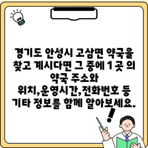 경기도 안성시 고삼면 약국을 찾고 계시다면 그 중에 1 곳 의 약국 주소와 위치,운영시간,전화번호 등 기타 정보를 함께 알아보세요.