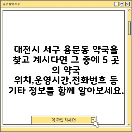 대전시 서구 용문동 약국을 찾고 계시다면 그 중에 5 곳 의 약국 위치,운영시간,전화번호 등 기타 정보를 함께 알아보세요.